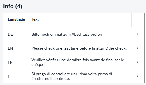 Dann befüllen wir die eigentliche Übersetzung. Handelt es sich um die aktuelle Sprache, übernehmen wir den Text einfach in die Tabelle, ansonsten rufen wir die API auf. Da wir intern mit SPRAS arbeiten, also dem einstelligen Sprachcode, müssen wir diesen zuerst ins ISO Format konvertieren. Dazu verwenden wir die XCO Bibliothek, um an den passenden ISO Code zu kommen. Die API übersetzt dann den Text und wir hängen das Ergebnis an die Tabelle.