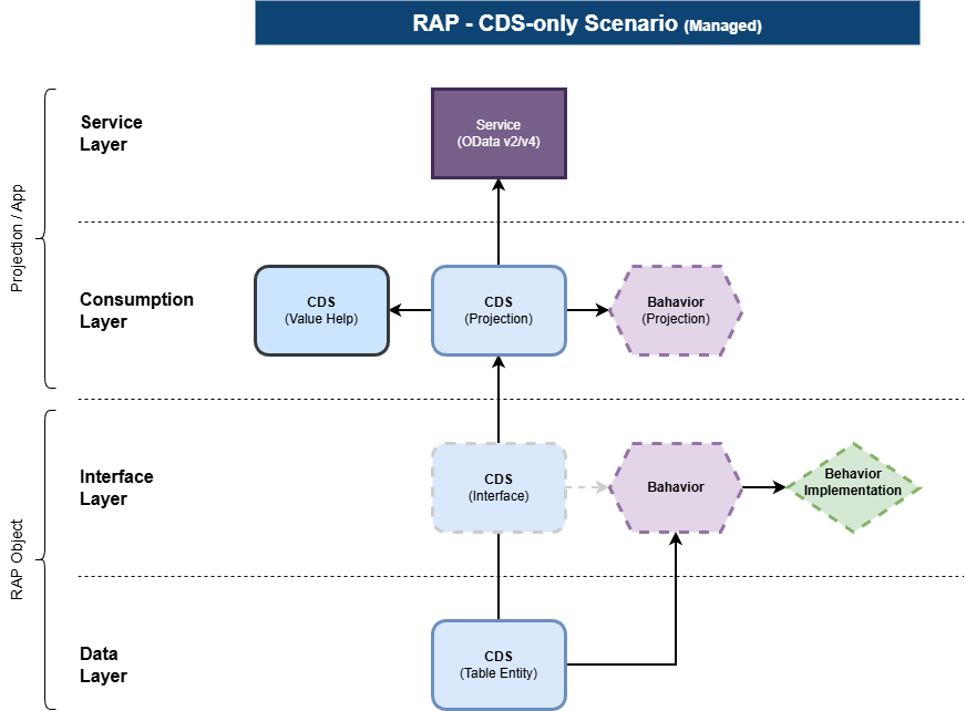 Das ABAP RESTful Application Programming Model ist das neue Modell in ABAP, um Cloud Ready und Clean Core Anwendungen zu erstellen. Mit RAP lassen sich neben Anwendungen, auch Schnittstellen für den internen und externen Gebrauch zur Verfügung stellen. Mit den neusten Features ist RAP sehr flexibel was den Aufbau und die Nutzung angeht, weshalb wir die Anwendungen in verschiedene Pattern aufteilen möchten.