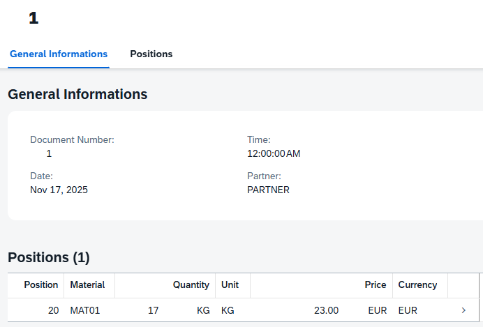 Nachdem wir dann das UI über die Metadata Extension angelegt haben, können wir die Anwendung testen. Dazu legen wir einen neuen Header an und befüllen die nötigen Informationen.