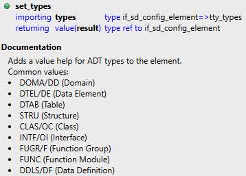Im Beispiel oben haben wir hardcodierte Werte verwendet, da aktuell der Standard keine Konstanten dafür anbietet, zumindest haben wir bisher keine gefunden. Die verfügbaren Werte findest du per F2 Hilfe auf die Methode SET_TYPES: