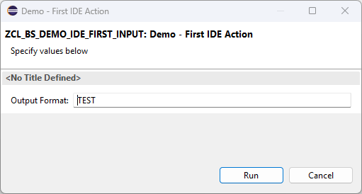 If we now execute the IDE action, we will see a popup and our first field displayed along with the default value.